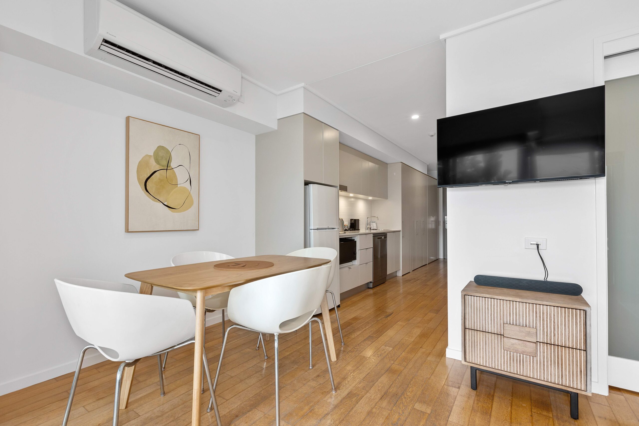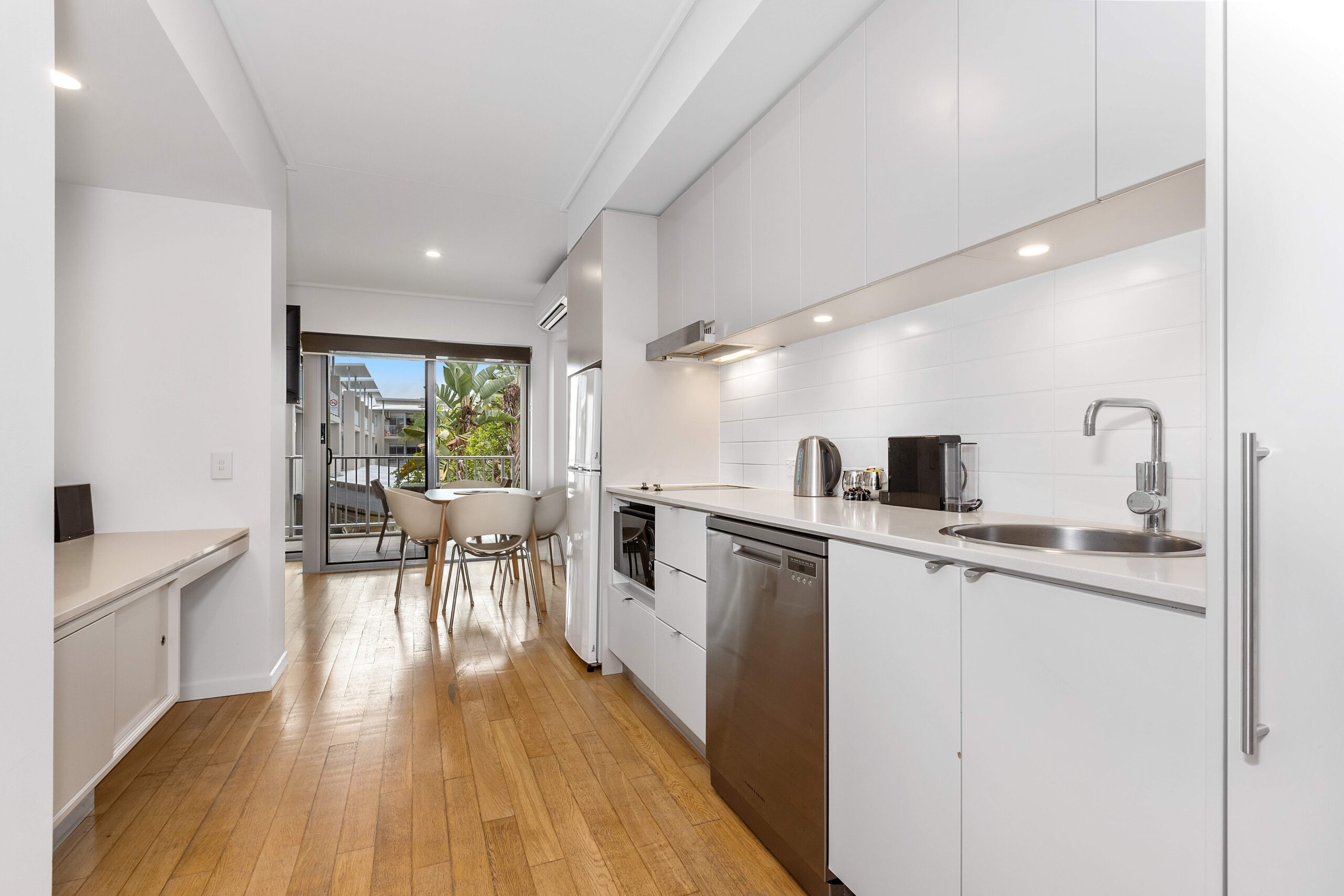 Light-filled and modern, the apartment features a galley kitchen, European laundry, spa bath, and both indoor and outdoor dining areas. Fully furnished, with a king bedroom with built-in robe, separated by sliding doors if desired.